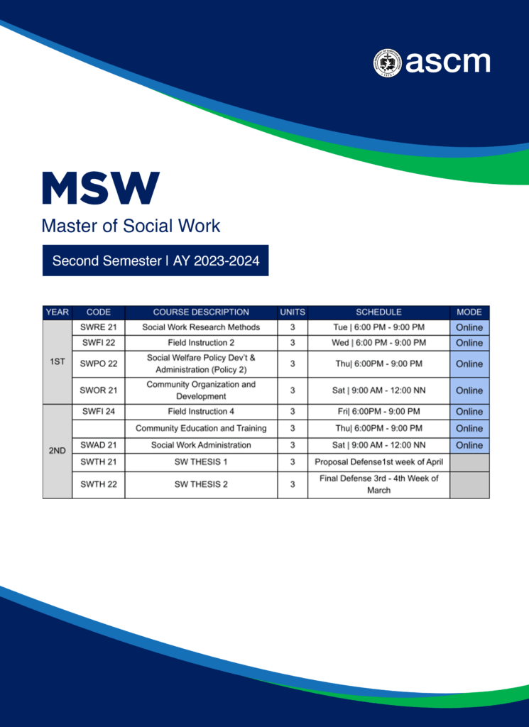 Check out the course schedules for the second semester of Academic Year 2023-2024.